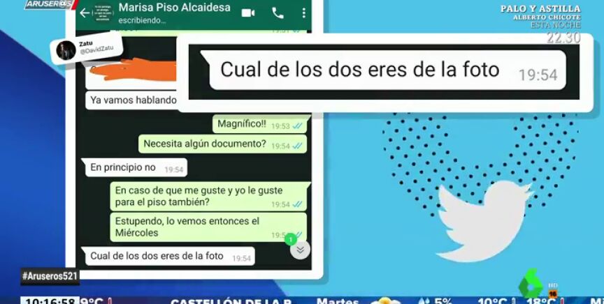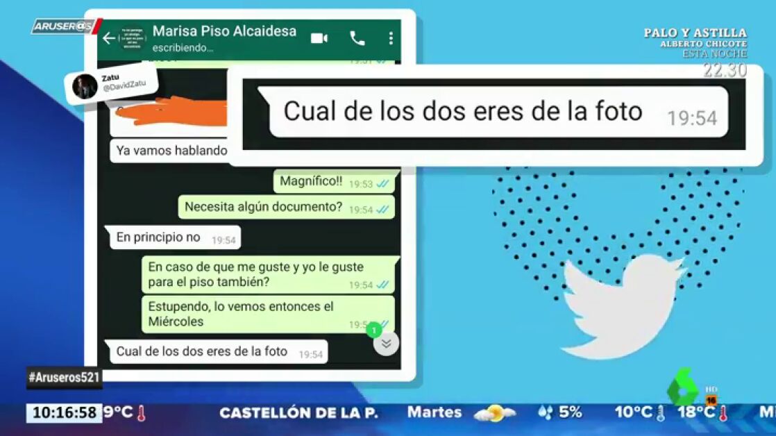 A principio todo parece normal. Hablan de los documentos necesarios para realizar el alquiler, pero la mujer se fija en la fotografía de Whatsapp del chico y le pregunta cuál de las dos personas que aparecen es.