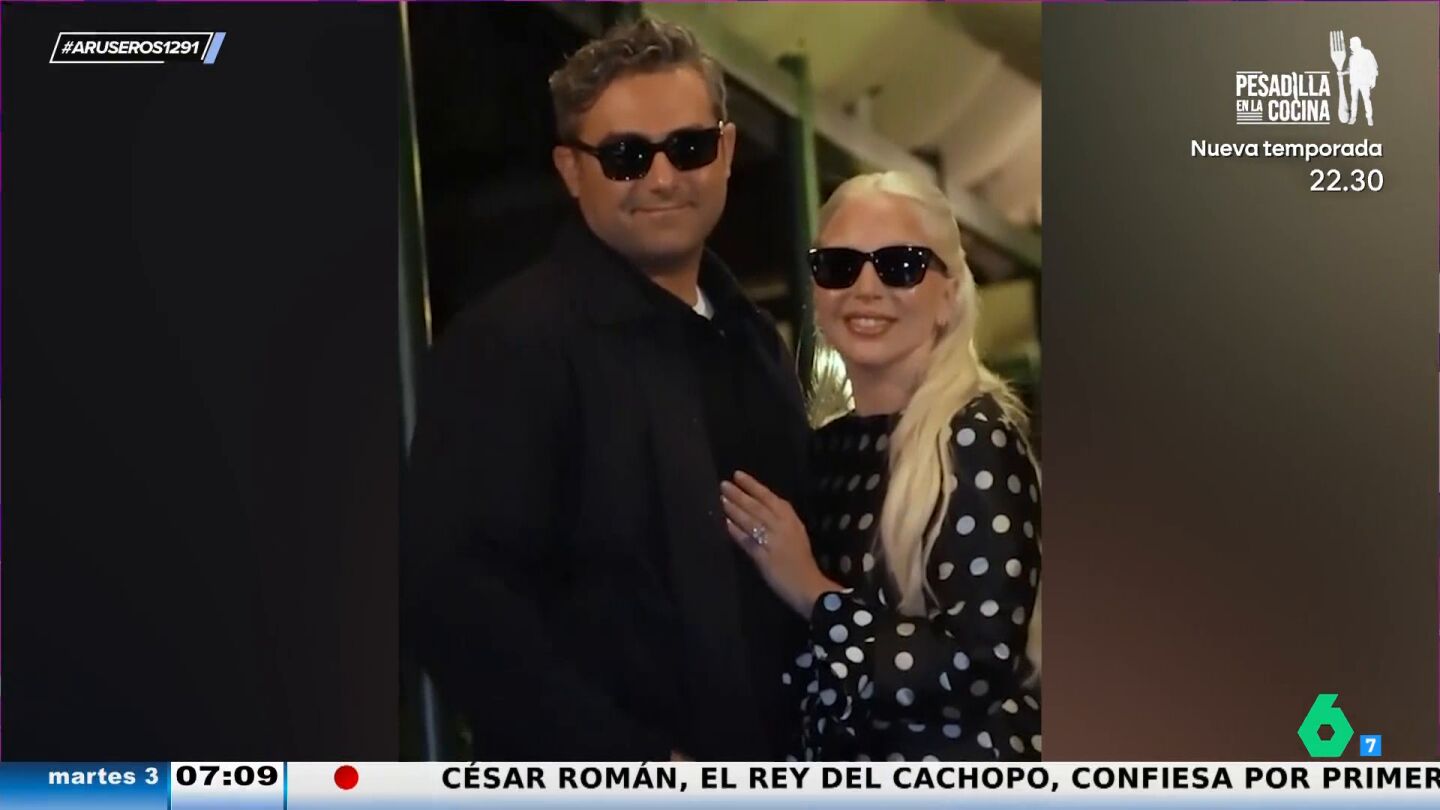 Lady Gaga presume de anillo de compromiso en su llegada a Venecia con su novio, Michael Polansky