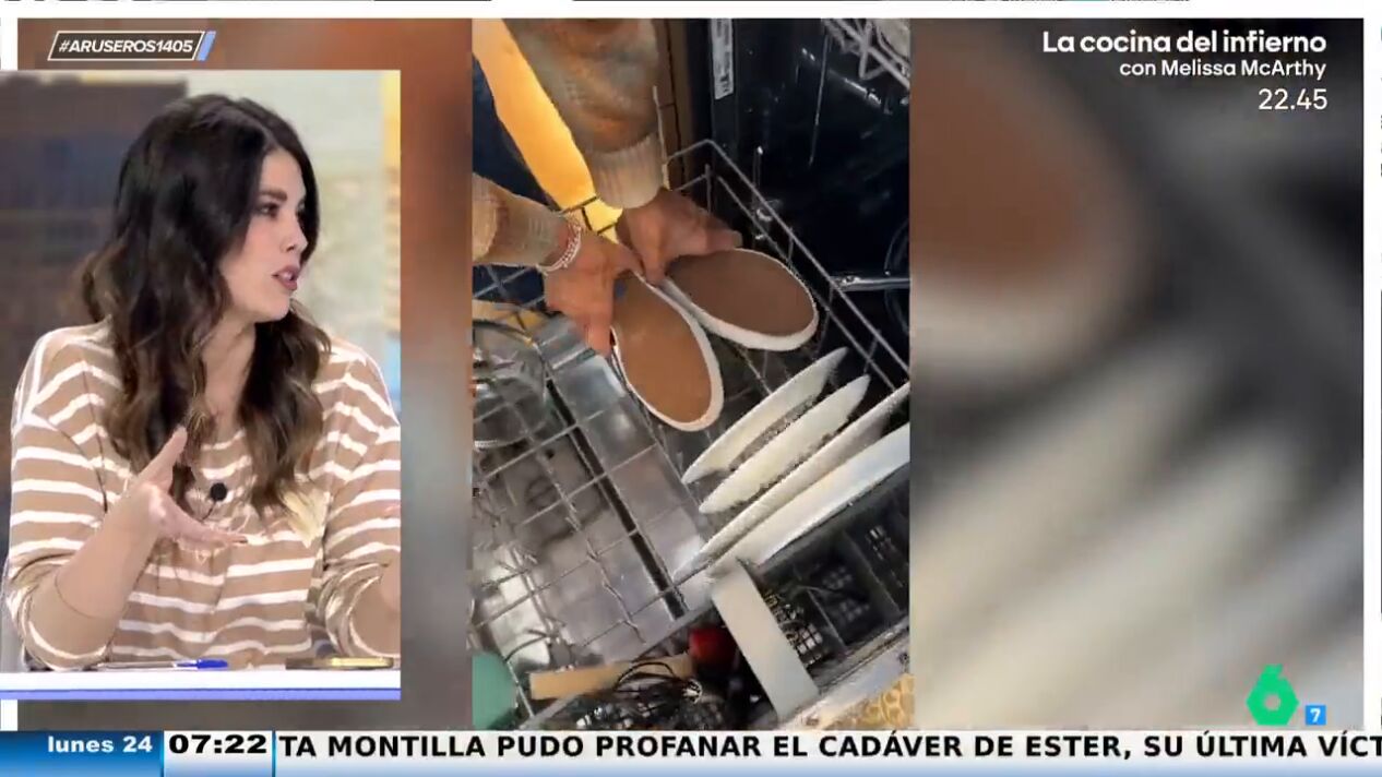 "Según ella, queda todo muy limpio, es todo muy sano, pero los internautas no creen lo mismo", explica Hans Arús en Aruser@s acerca de este vídeo viral que ha generado un auténtico debate en redes. La usuaria de Instagram @TheDailyNelly ha decidido que el lavavajillas no es solo para lavar la vajilla, como su propio nombre indica, sino que también vale para darle un 'enjuagón' a las zapatillas.