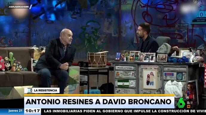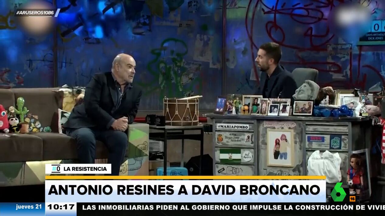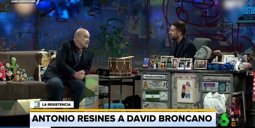 David Broncano y Antonio Resines se han lanzado dardos mutuos en el plató de La Resistencia. El presentador afirmó que el actor iba vestido como "un ganadero de los 80" y que debía innovar un poco, a lo que Resines respondió rápidamente recordándole que él iba vestido igual.