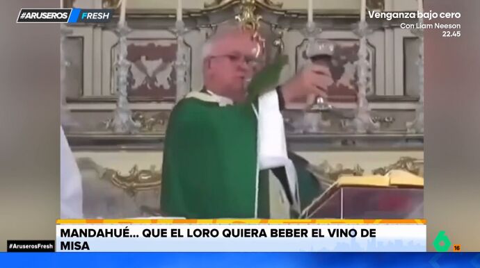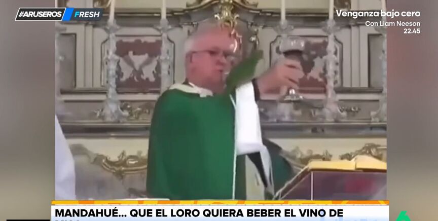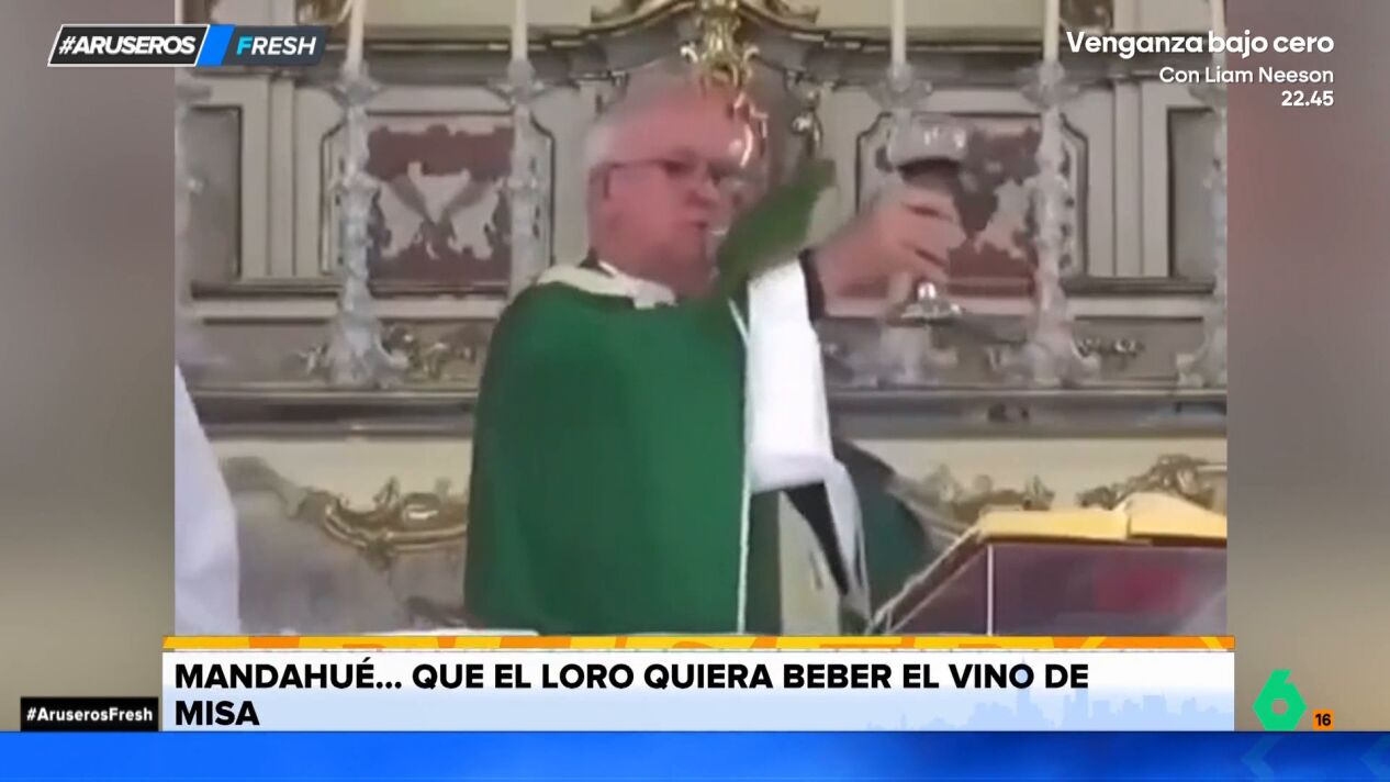 Los virales de loros son de los que más gracia hacen a los colaboradores de Aruser@s. Es el caso del pájaro de este vídeo, que se cuela en pleno sermón para robarle el vino de misa al cura.