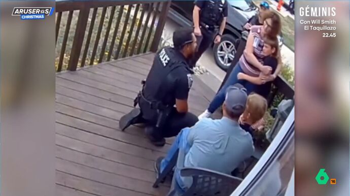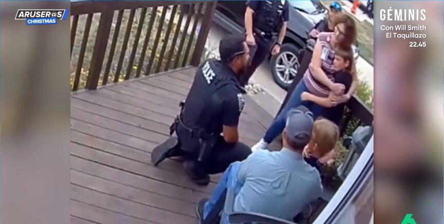 En el vídeo que acompaña a esta noticia, los dos hermanos lloran abrazados en el portal mientras que un agente se acerca a ellos.