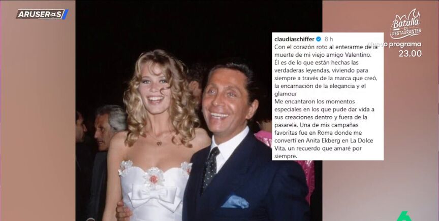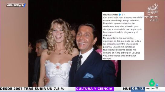 Claudia Schiffer ha afirmado tener el "corazón roto" tras enterarse del fallecimiento de su "viejo amigo" Valentino: "Él es de lo que están hechas las verdaderas leyendas, viviendo para siempre a través de la marca que creó".