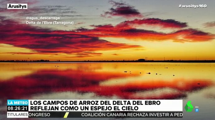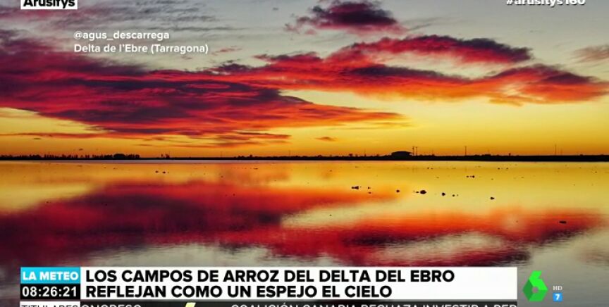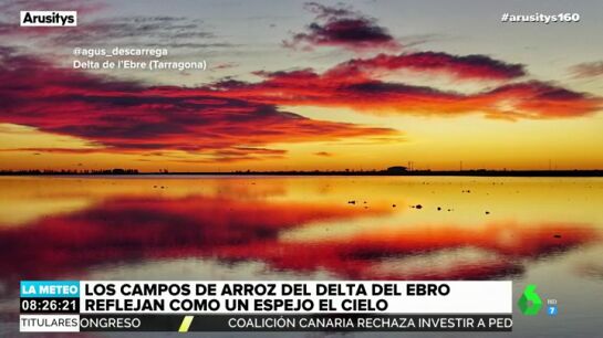 Los campos de arroz del Delta del Ebro han dejado una bonita estampa, al actuar de espejo y reflejar el amanecer. Mientras que las amapolas han teñido de rojo los valles de Badajoz.