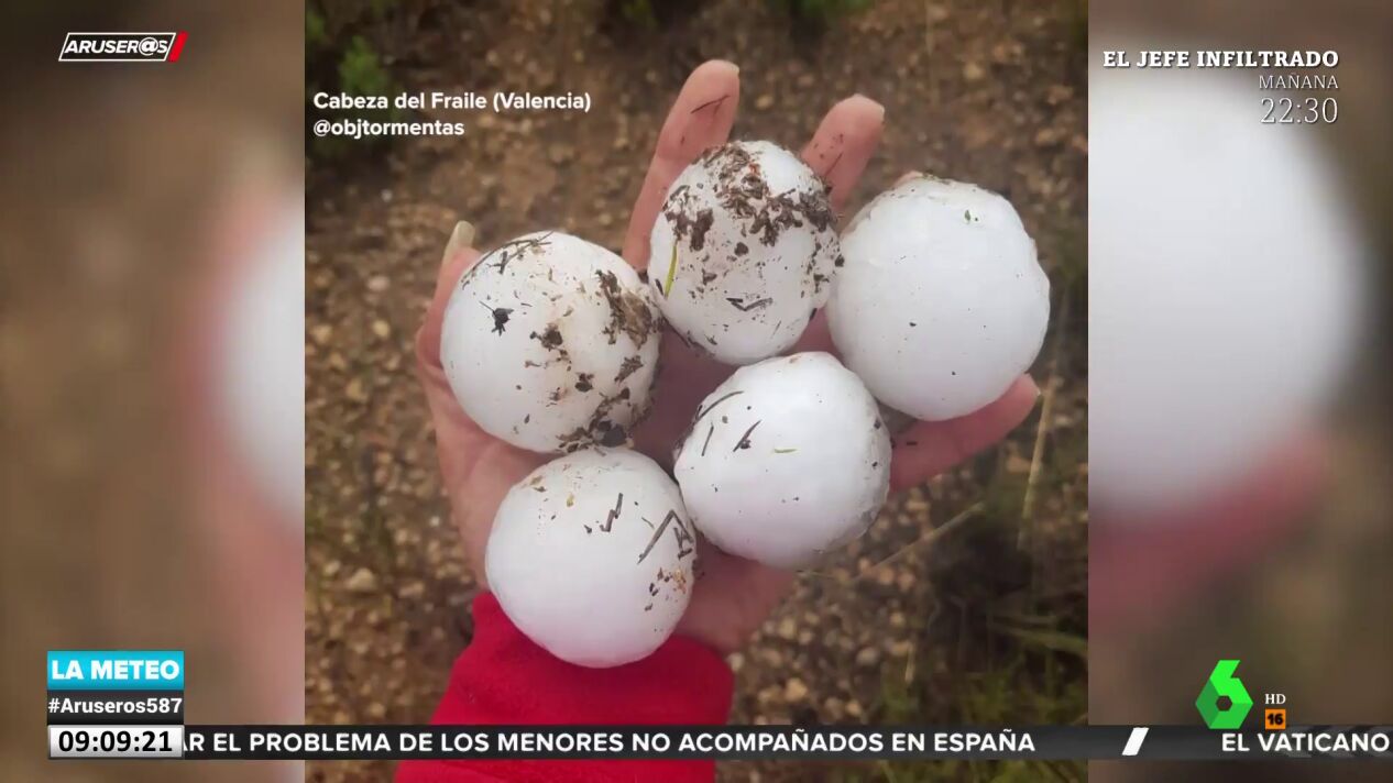 El meteorólogo Marc Redondo muestra en Aruser@s las sorprendentes imágenes de la granizada que ha caído en la Comunitat Valenciana en las últimas horas.