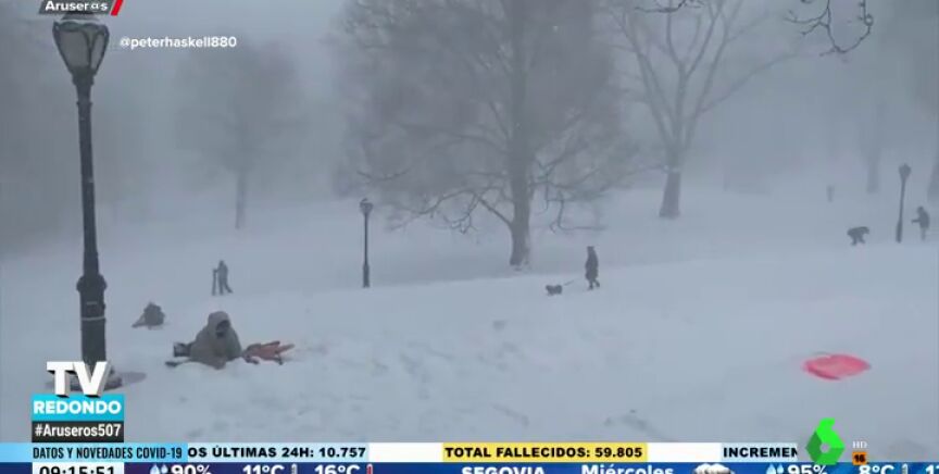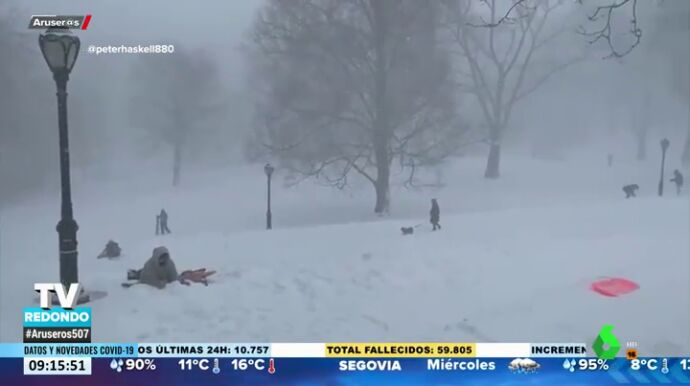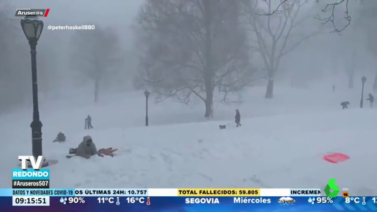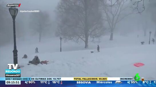 El meteorólogo de Aruser@s, Marc Redondo, nos ha mostrado las sorprendentes escenas que ha dejado la nevada en Nueva York. Una nevada histórica que ha dejado en Central Park hasta 49 centímetros de nieve, algo que no se veía desde el año 1869.