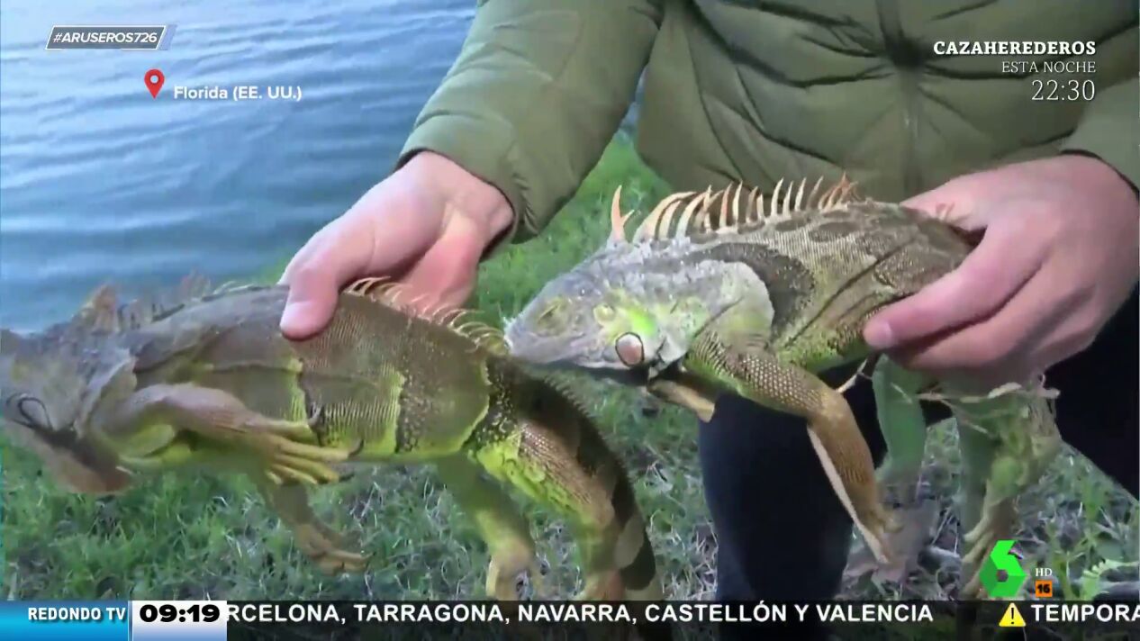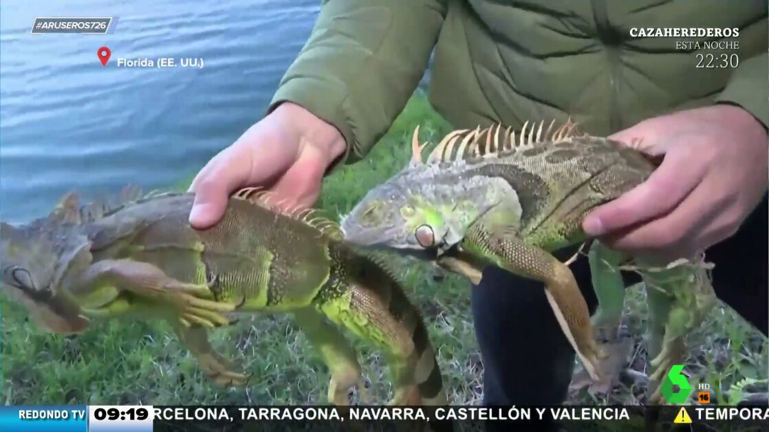 Sin embargo, Marc Redondo, meteorólogo de 'Aruser@s', ha explicado que estas iguanas no están muertas: "Mucha gente se piensa que están muertas, pero no. Lo que pasa es que bajan tanto las temperaturas que se quedan inmóviles y al caer al suelo, hasta que no sube la temperatura, no recuperan la movilidad". En el vídeo que acompaña a la noticia, se puede ver cómo un hombre recoge iguanas completamente inmóviles del suelo, algo que ha sorprendido a Alfonso Arús. "¿Qué paraguas está hecho a prueba de iguanas?", ha planteado el presentador.