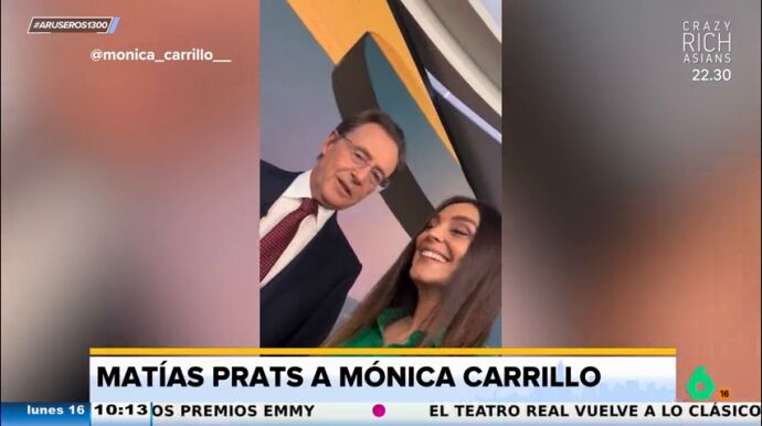 Alfonso Arús muestra en el vídeo principal de esta noticia el "cariñoso" zasca de Matías Prats a Mónica Carrillo. La periodista decide grabarse de manera informal junto al presentador anunciando que llevan haciendo el informativo 16 años juntos. "Vídeo no", dice resoplando Prats cuando ve a su compañera apuntándole con el móvil.