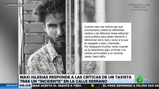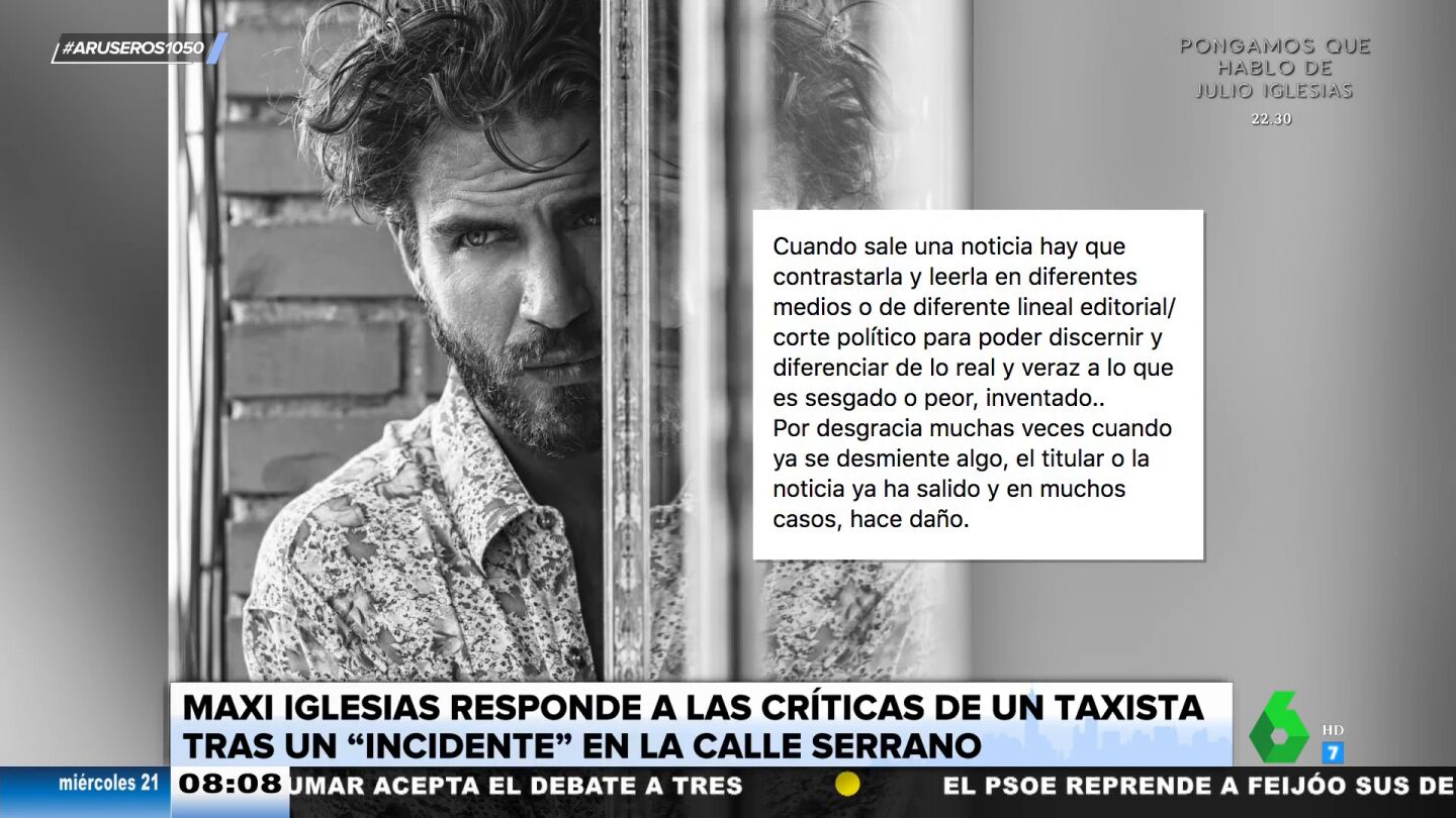 Maxi Iglesias ha desmentido la noticia de que un taxista habría expulsado de su vehículo tanto al actor con a sus amigos por una mal comportamiento. "Desde pequeño aprendí valores que con el tiempo se han fortalecido", defiende Maxi Iglesias.