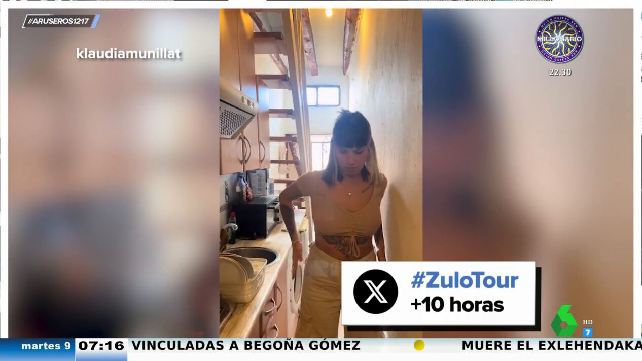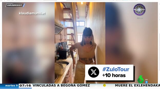 La joven que hace unas semanas creó mucha controversia porque subió un vídeo diciendo que hace dos años su casa era un zulo y ahora todos sus amigos querían una igual vuelve a Aruser@s, pero esta vez mostrando cómo es su casa a través de TikTok. "Me he hecho derogar pero por fin llega el Zulo Tour", comienza diciendo la chica. En la publicación se puede ver su habitación y su salón, en una misma estancia, un pasillo muy estrecho con la cocina y un armario empotrado, y unas escaleras para subir al cuarto de baño. "Pero por lo menos tengo un tejado al que puedo salir, mirad que vistas", acaba declarando la tiktoker enseñando las vistas de su casa.