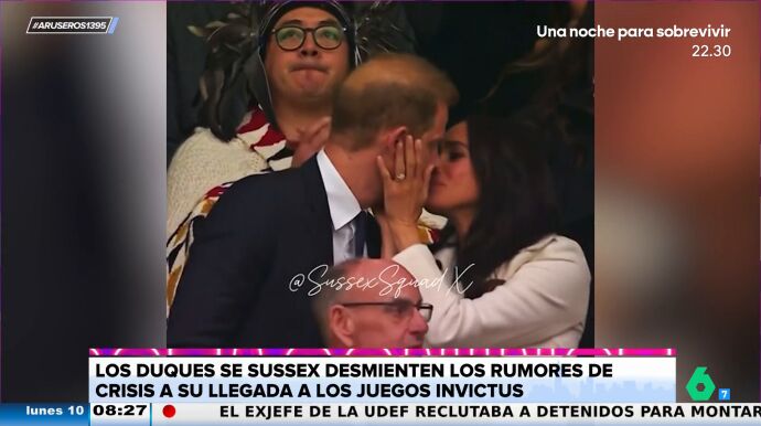 "Una imagen vale más que mil palabras", destaca Tatiana Arús al mostrar en el vídeo principal de esta noticia cómo los duques de Sussex llegaban montados en un carrito de golf mientras saludaban a los presentes. "Las muestras de cariño han sido más que evidentes", resalta la colaboradora mientras enseña cómo la pareja se daba un beso en público.