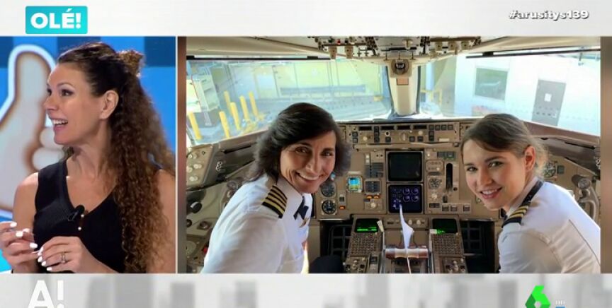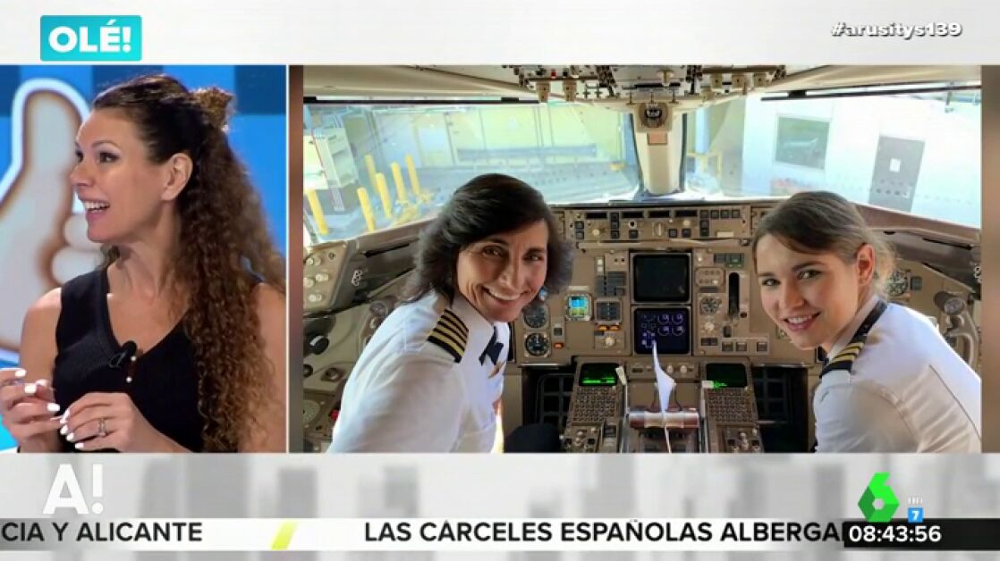 Una madre y su hija coincidieron pilotando el mismo vuelo y la fotografía que les hizo un usuario de Twitter se hizo viral. Una imagen que han recreado Angie Cárdenas y Tatiana Arús en pleno directo.