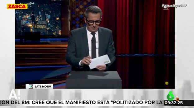 Además, el presentador también recibió "el sobre de Vox" y, ante los abucheos del público dijo "democracia, como concepto". Lo más curioso es que cuando lo fue a abrir no había "programa electoral", a lo que Buenafuente contestó: "Como en el propio partido".