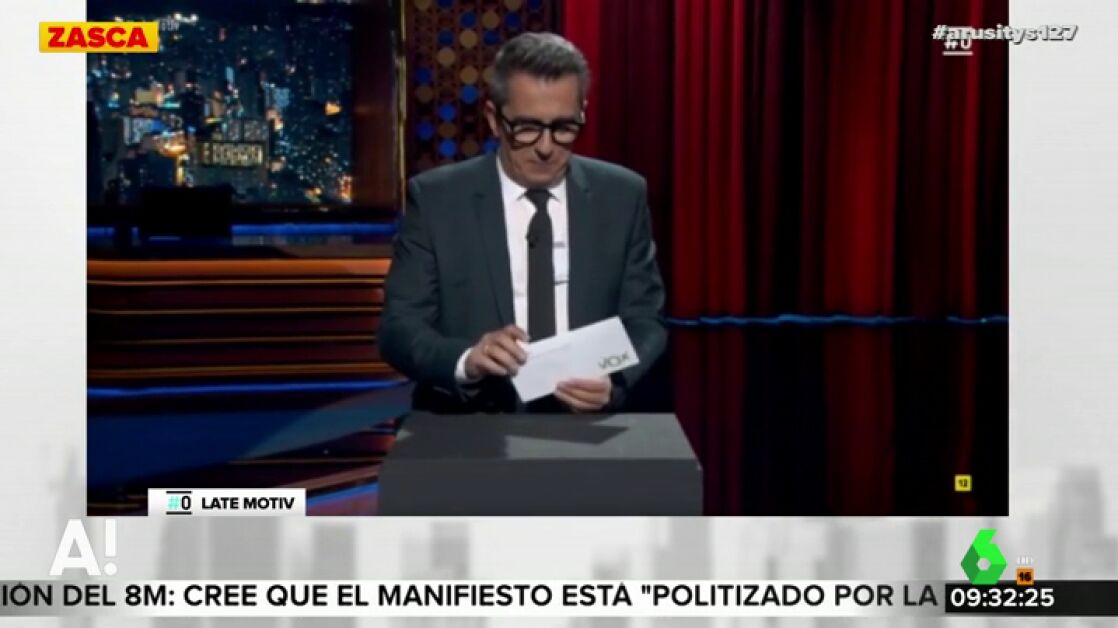 El 'zasca' de Buenafuente a Vox tras recibir el sobre con su propananda electoral: "No hay programa, como en el propio partido"
