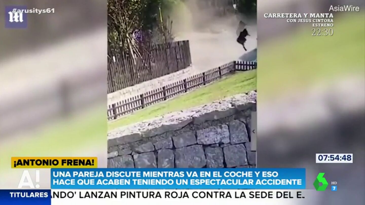 En China, una pareja discute mientras va discutiendo y esto hace que acabe teniendo un espectacular accidente. El hombre, pese a que acabó volando por los aires al salir por una de las ventanillas, salió ileso.