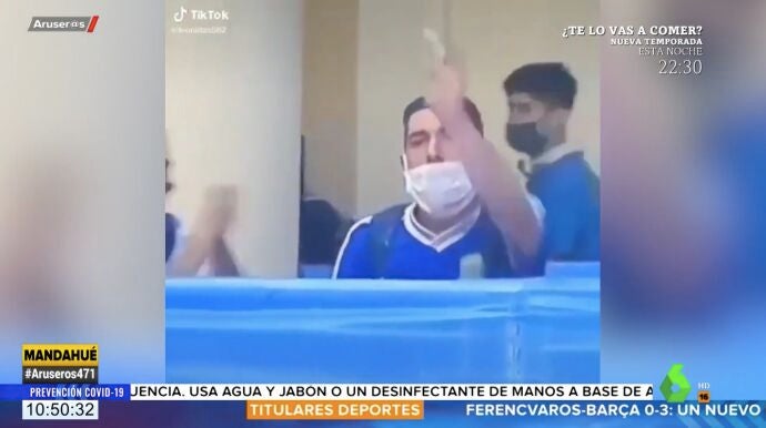 El usuario de TikTok @leonidas582 ha colgado en la plataforma de vídeo las imágenes en las que se ve a un joven, con la mascarilla puesta de forma incorrecta, tirando un objeto sospechoso al féretro de Maradona. El argentino falleció el pasado 25 de noviembre por un paro cardiaco en su casa de Tigre.