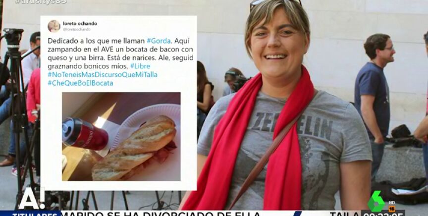 Loreto Ochando dedica un 'zasca' en Twitter a los que la llaman gorda con una fotografía de su bocata de bacon y queso y una birra. Arusitysaplaude en este vídeo la respuesta de la periodista.