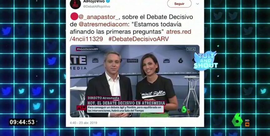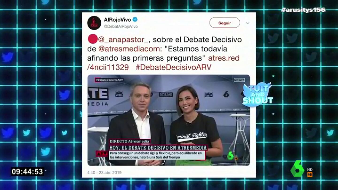 Su compañeras de cadena, la periodista Julia Otero aplaudió el look feminista de la moderadora del debate y, además, destacó que era la única mujer en los dos debates electorales.