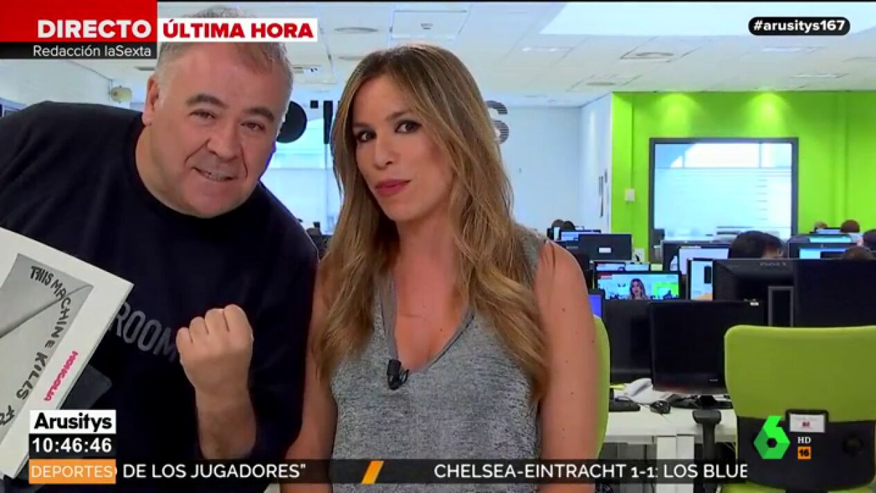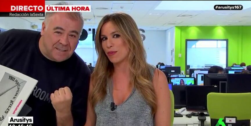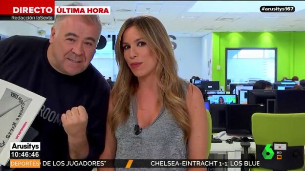 Antonio García Ferreras ha sorprendido al irrumpir en el directo de Arusitys para mostrar su apoyo a José Yélamo. Lo ha hecho cuando Paula del Fraile y Alfonso Arús estaban hablando sobre el próximo partido, en el que se enfrentan el Cádiz y el Deportivo de La Coruña.