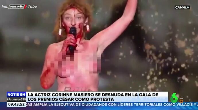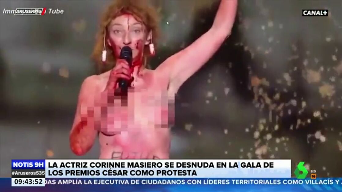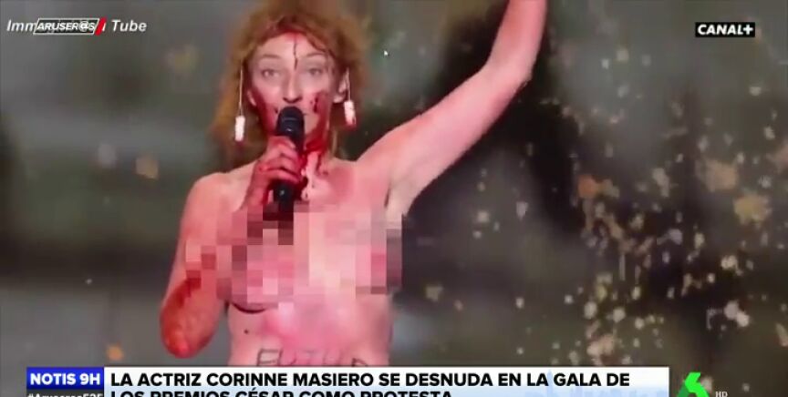 La actriz Corinne Masieros se desnuda en los Premios César en protesta contra el cierre de la cultura en Francia