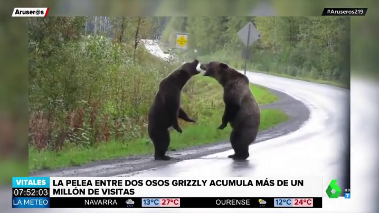 La pelea entre dos osos grizzly en una carretera de Canadá que acumula más de un millón de visitas