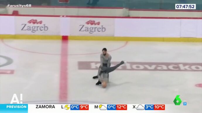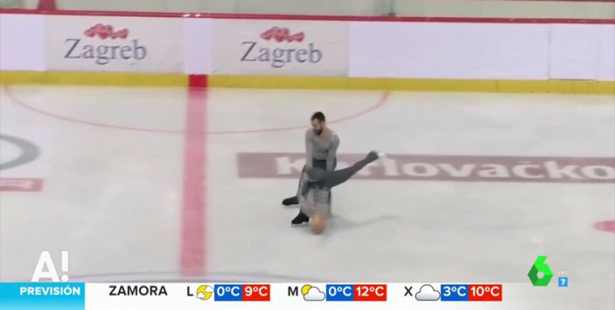 El compañero cae prácticamente encima de ella pero afortunadamente todo acaba en un susto a pesar de que casi se desnuca al caer sobre la pista de hielo.