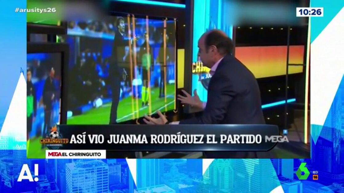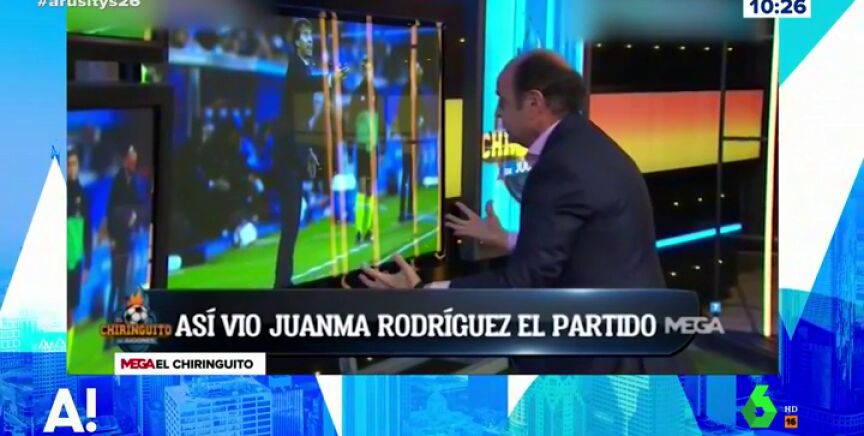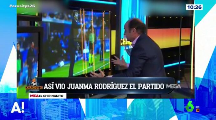 Arusitys recuerda el momentazo que se vivió en El Chiringuito de Jugones con Juanma Rodríguez. El periodista deportivo escenificó cómo vivió el Alavés-Real Madrid en su casa. Una intensidad que reflejó en el programa presentado por Josep Pedrerol.