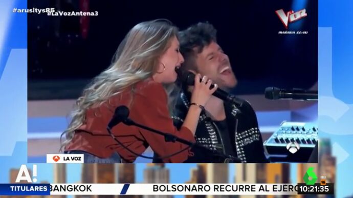 Un voz que conquistó rápidamente al coach Pablo López, quien quiso cantar con ella otra la canción 'Ánegl caído', protagonizando uno de los momentos más apasionados del programa.