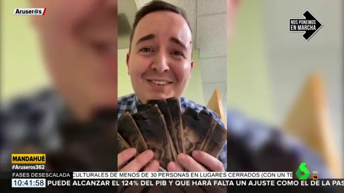 Un trabajador bancario ha publicado un vídeo en el que muestra los billetes abrasados que un cliente le ha entregado tras meterlos al microondas por miedo a contagiarse del COVID-19. En este vídeo puedes ver la reacción del hombre.