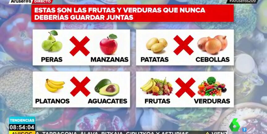 ¿Sabías que hay frutas y verduras que se estropean si se guardan juntas? Aruser@s consulta con el chef Ever Cubilla que nos explica en este vídeo cuál es el motivo de esta "enemistad" entre alimentos.