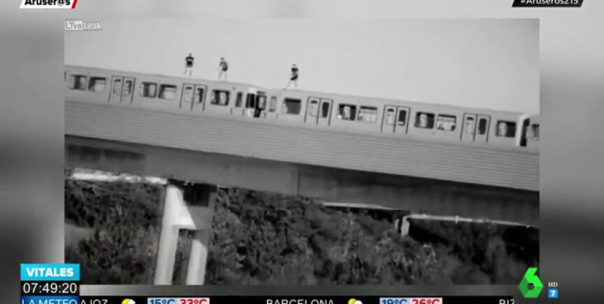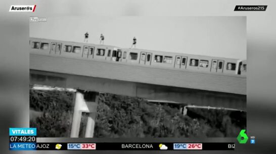 Aruser@s muestra el momento en el que tres jóvenes se dirigen a la estación de trenes de Viena subidos en el techo de los vagones en marcha.