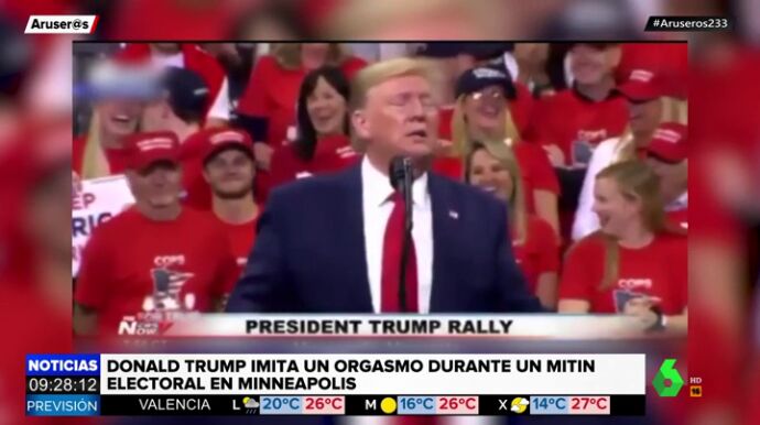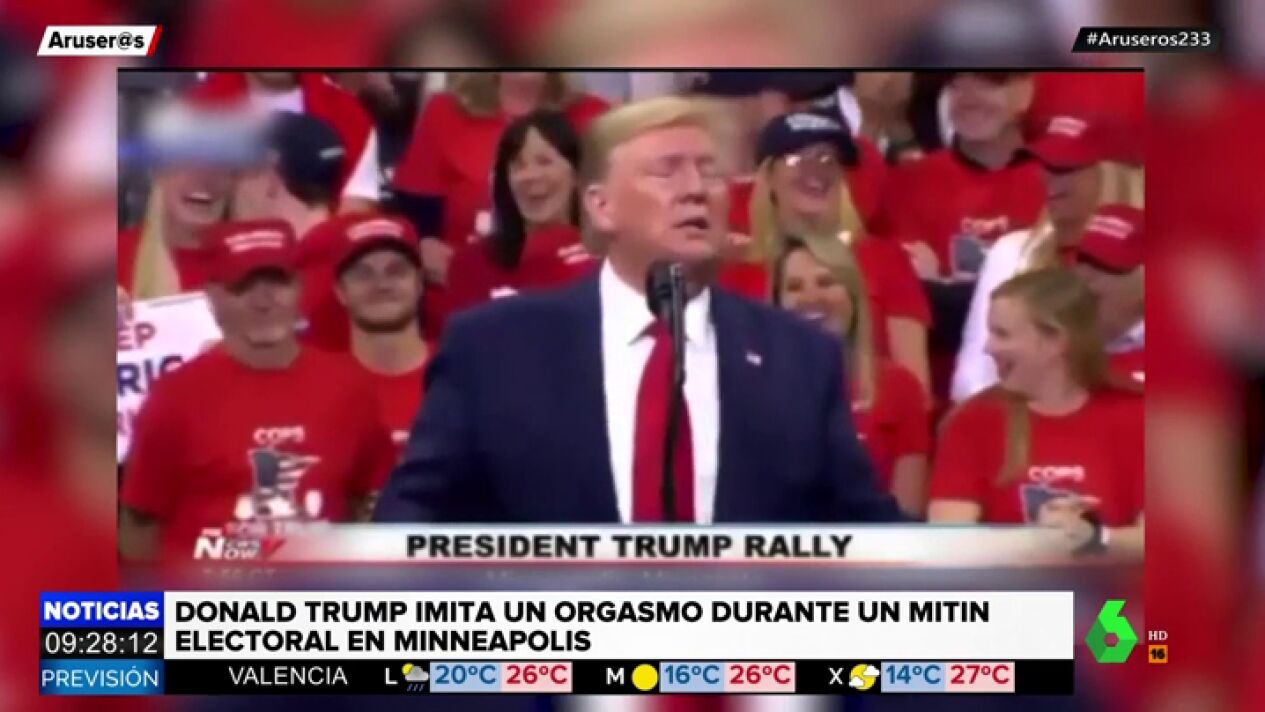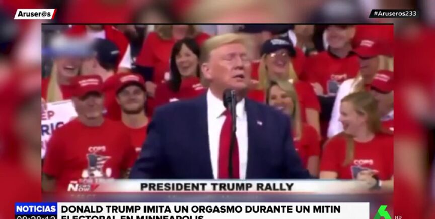 El presidente de EEUU ha recurrido a la escena de Meg Ryan fingiendo un orgasmo en 'Cuando Harry encontró a Sally'. En este vídeo puedes ver la recreación que ha hecho Trump en un mitin en Minneapolis.