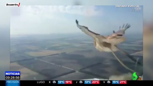 En el vídeo se puede ver el momento en el que ave impacta contra el parabrisas ante el susto del piloto que dejó caer la cámara tras el impacto.