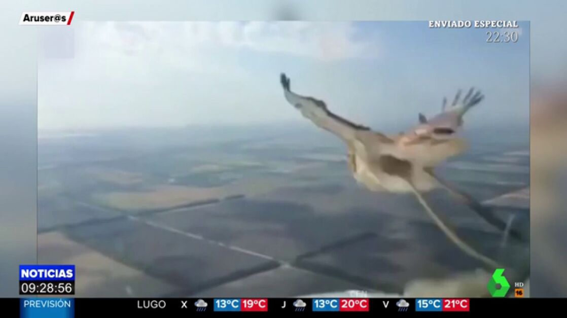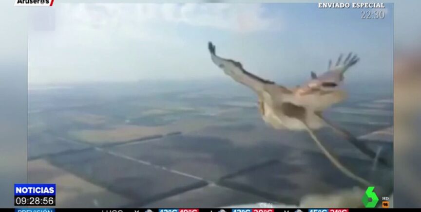 Un piloto graba el paisaje desde el aire, cuando en el horizonte aparece un pájaro que choca directamente contra el cristal, muriendo en el acto.