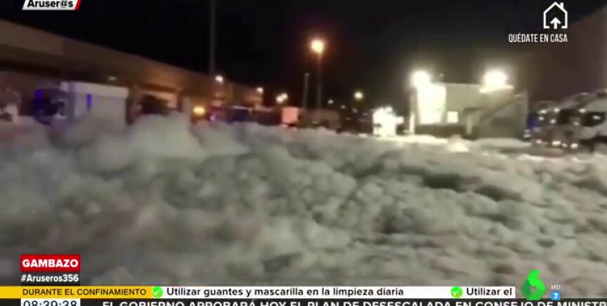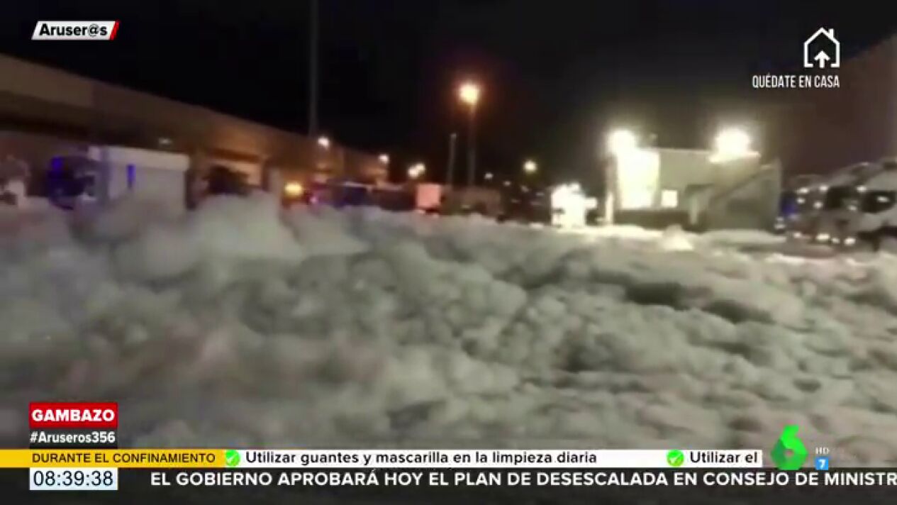 Una avalancha de espuma antiincendio, con olas de unos cuatro o cinco metros, ha atrapado a un trabajador de Mercadona en Zaragoza.