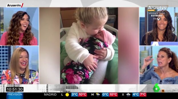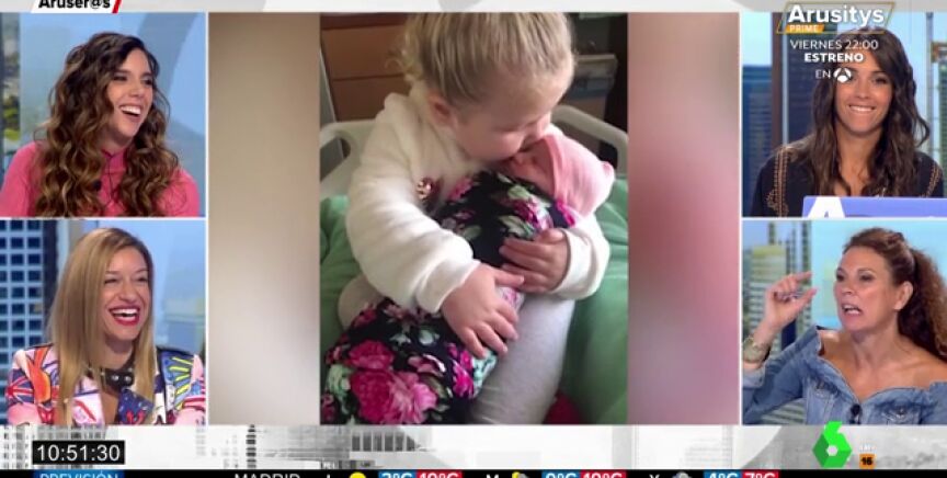 Una niña de tres años conoce a su hermana recién nacida y la ternura y la emoción de la pequeña emociona a todos los colaboradores en plató al ver el vídeo.
