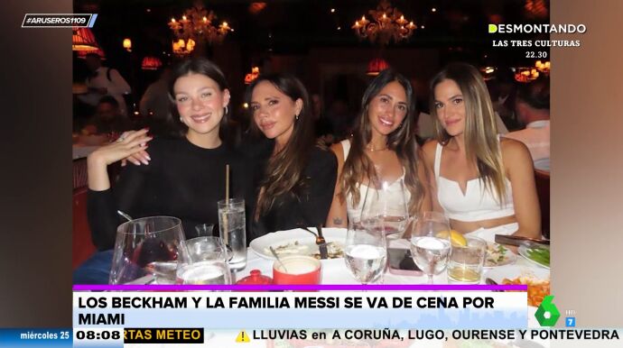 Por otro lado, el presentador destaca que la familia Beckham se ha ido de cena por Miami con su hijo Brooklyn Beckham y su mujer Nicola Peltz. Pero no solo ha sido una cena familia, los Beckham también invitaron a dos de los futbolistas que juegan en su equipo, Leo Messi y Sergio Busquets, que acudieron con sus respectivas parejas: Antonela Rocuzzo y Elena Galera.