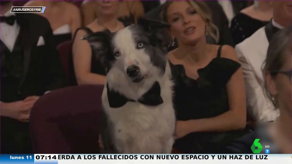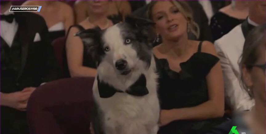 Este talentoso border collie de ojazos azules permaneció durante toda la velada soportando los chistes de Jimmy Kimmel -el presentador-, los aplausos, el jaleo y el jolgorio habituales en estos eventos. No solo eso, sino que estuvo sentadito y atento, sin apartar la vista de todo lo que pasaba en el escenario, como podemos ver en este vídeo emitido en Aruser@s.