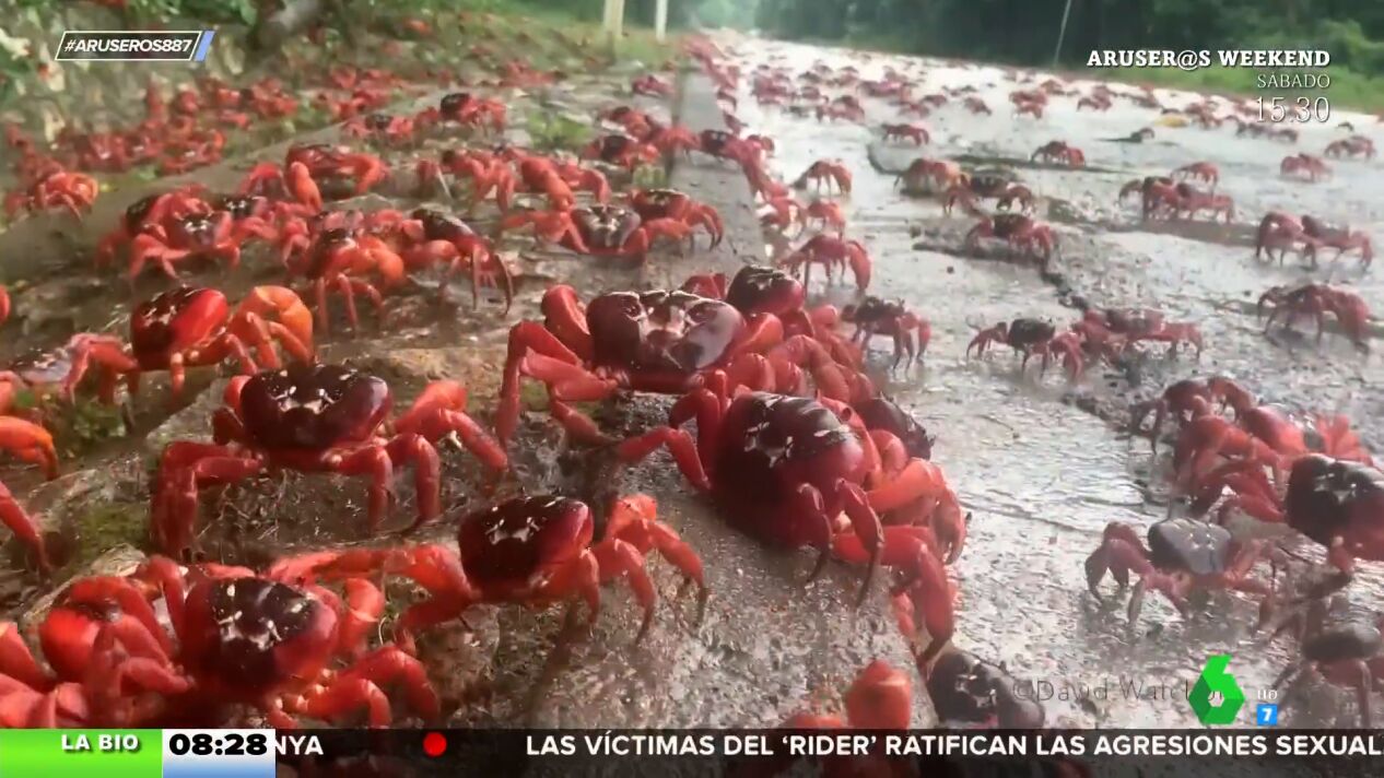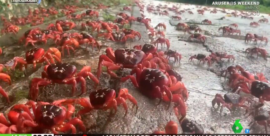 "Ni la operación salida del próximo puente". Así define Alfonso Arús la migración de estos cangrejos rojos australianos, que en época de reproducción, emprenden un largo camino hasta la playa. Así lo explica la biólogaEvelyn Segura en Aruser@s.