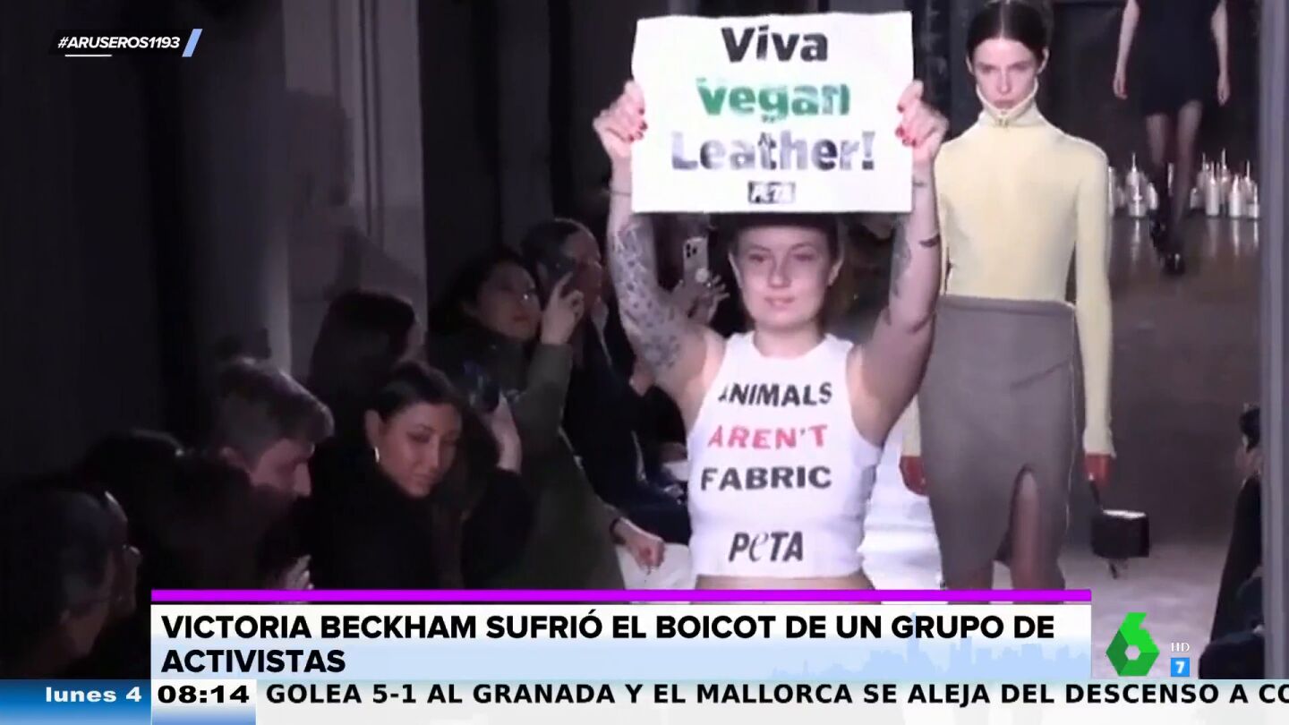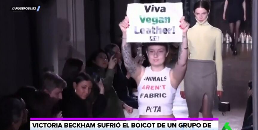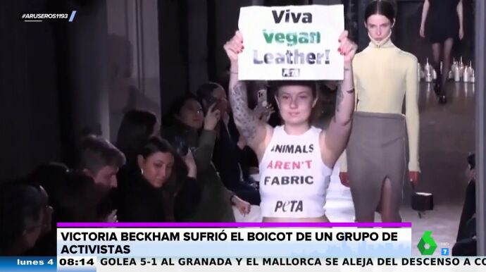 El momento en el que activistas a favor de la ropa vegana irrumpen en el desfile de Victoria Beckham en París