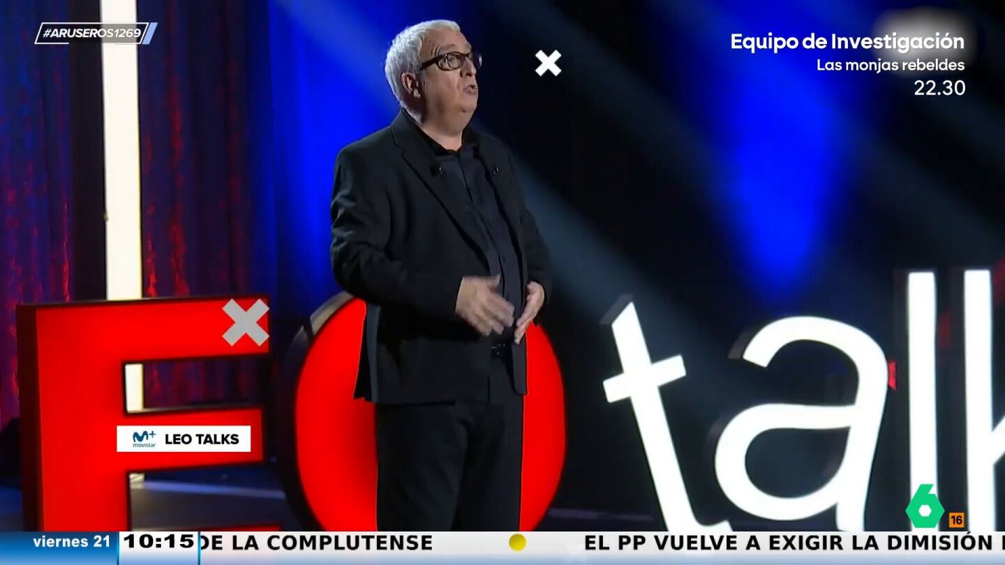 Alfonso Arús enseña en el plató de Aruser@s un vídeo viral de Leo Harlem en 'Leo Talks'. "El salto base, la de gente que se ha muerto con eso", destaca el humorista, que explica cómo ser campeón de este deporte. "Tú te federas, no saltas, y, en dos años, campeón de España porque van cayendo los de alante", destaca.