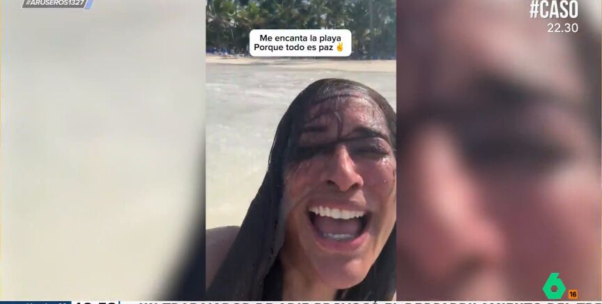 Una mujer es arrollada por una ola mientras intenta grabarse diciendo: "Me encanta la playa porque todo es paz"
