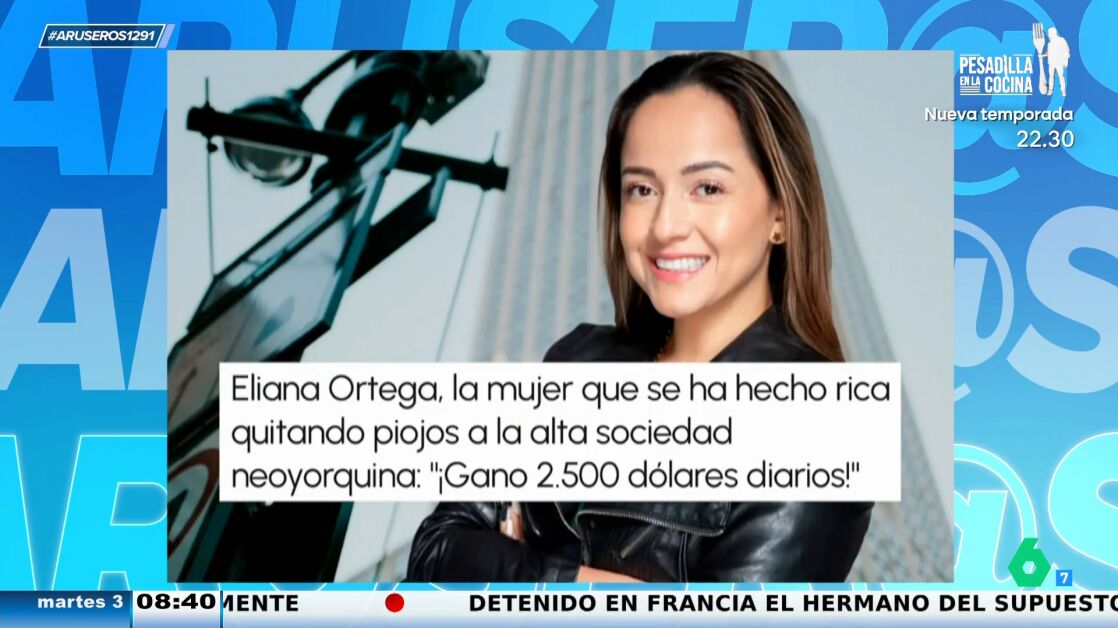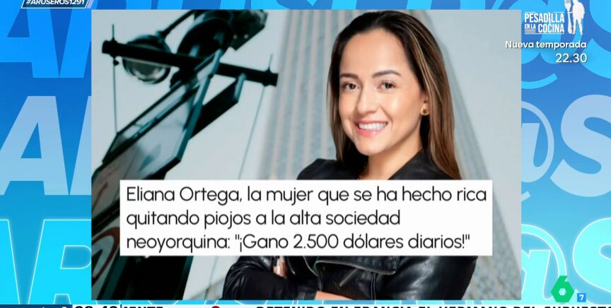 Eliana Ortega ha fundado su propia empresa de eliminación de piojos y gana hasta 2.500 dólares diarios por quitar parásitos a la alta sociedad neoyorquina. "Por cada sesión se lleva 176 euros", detalla Patricia Benítez.