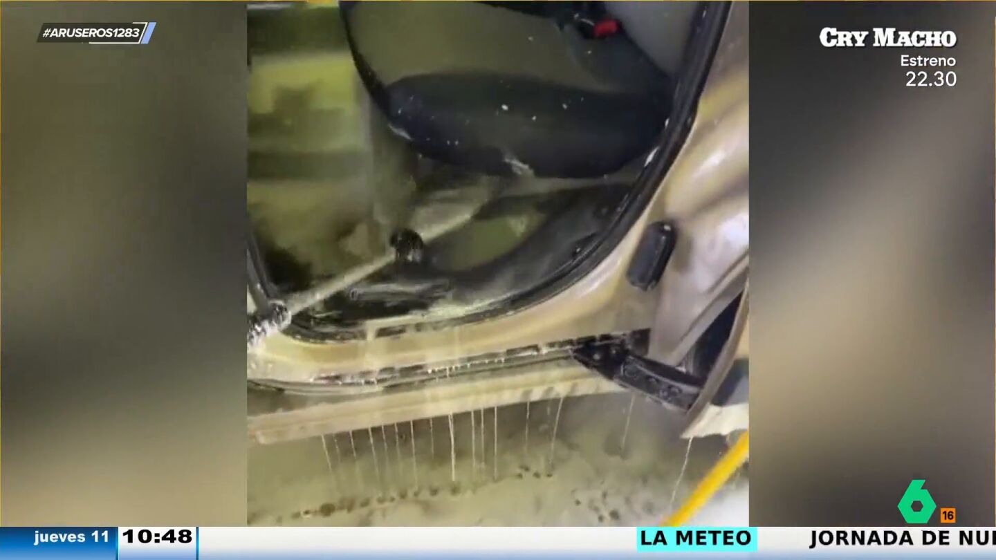 Alfonso Arús mostraba la temporada pasada de Aruser@s este vídeo viral. Una mujer acude a un túnel de lavado para limpiar su coche. La chica considera que el interior también está muy sucio y decide abrir las puertas y lavarlo con la manguera a presión, dejando el coche calado.
