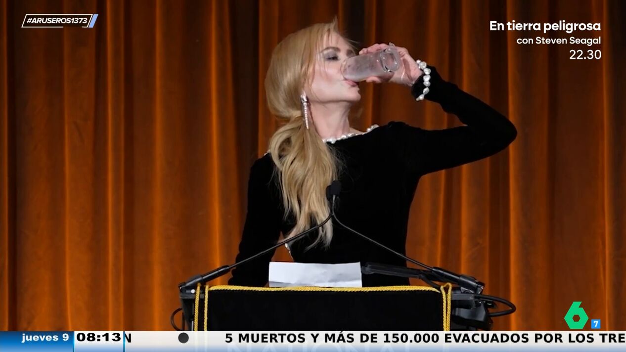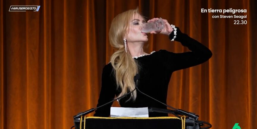 "Por todas las 'babygirls' en la sala". Es el brindis que hace Nicole Kidman justo antes de beberse de un trago un vaso de leche en la entrega de premios de la National Board of Review, en la que obtuvo el galardón a la mejor actriz. "Normalmente, todo el mundo brinda con champán, pero ella ha querido hacer un guiño a una de las escenas más famosas de su película 'Babygirl'", explica Tatiana Arús en Aruser@s.
