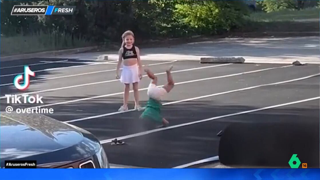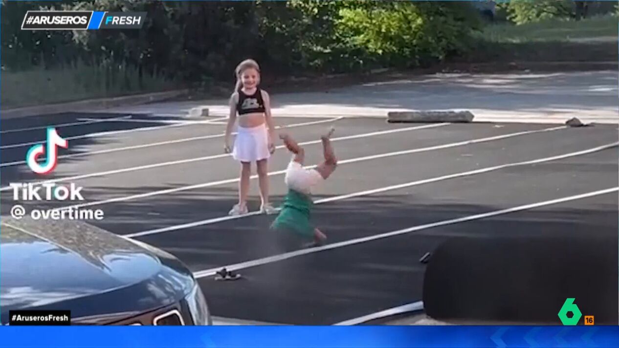 Tiene tan solo dos años pero ya hace el mortal hacia atrás mejor de lo que tú lo has hecho, si has conseguido hacerlo alguna vez, en toda tu vida. Esta pequeña gimnasta se ha convertido en viral por el espectacular salto que podemos ver en estas imágenes emitidas en Aruser@s.