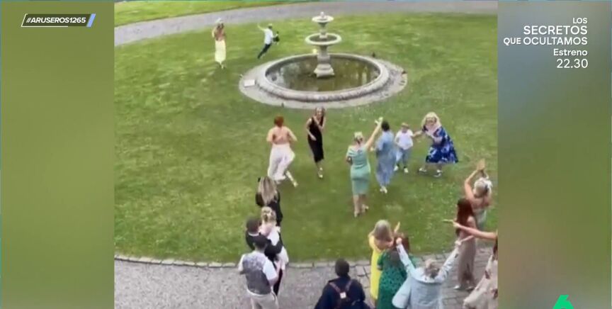 Un niño coge el ramo que lanza la novia y sale huyendo: así es el cómico momento en el que lo persiguen las invitadas