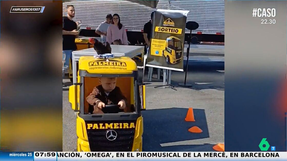 Un niño sorprende a todos los adultos presentes mostrando su destreza al conducir un camión