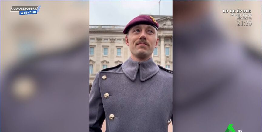 Aruser@s Weekend ha presentado este sábado al rompecorazones oficial del Palacio de Buckingham. Como ha comentado Alfonso Arús, la imagen de un guardia real del palacio se está haciendo viral por la supuesta belleza y buena planta del hombre.