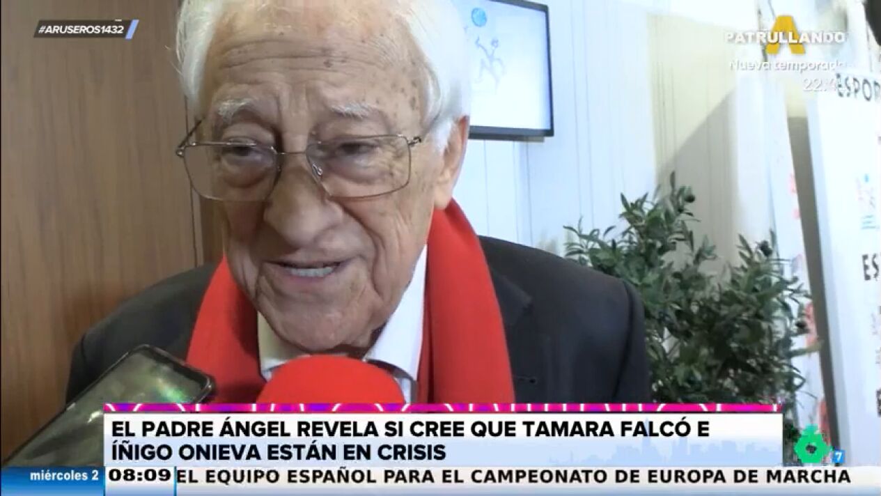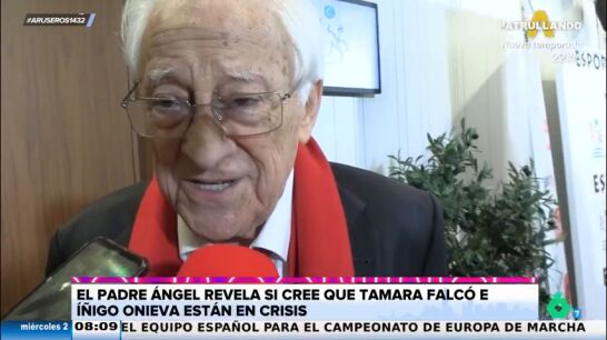 Por su parte, el padre Ángel reflexiona sobre Tamara Falcó, de quien dice que "es un pilar de los jóvenes": "Es una mujer que cree en dios y en lo que hace, no es un postureo". Preguntado sobre los rumores de crisis en el matrimonio, el padre Ángel asegura que "en todas las familias hay disputas y crisis, pero ellos saben dialogar". Finalmente, cuando una reportera destaca que quiere mucho al matrimonio, el padre Ángel responde de una forma inesperada: "Sí, más a ella que a él, pero a los dos".